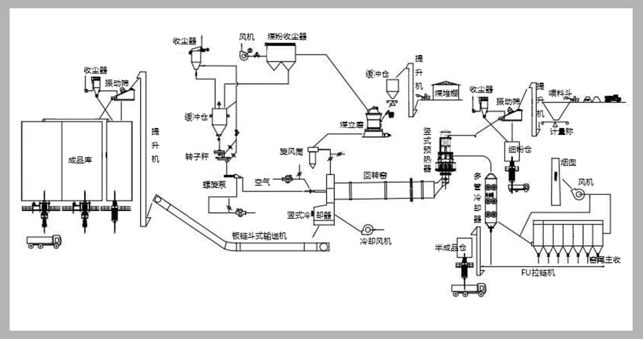 【設備配置】石灰回轉窯+豎式預熱器+豎式冷卻器